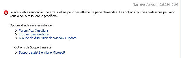 Vous êtes sous Windows XP, probalement avec le SP2 installé, et lors d'une tentative de mise à jour à l'aide de Windows Update, ce joli message apparaît :